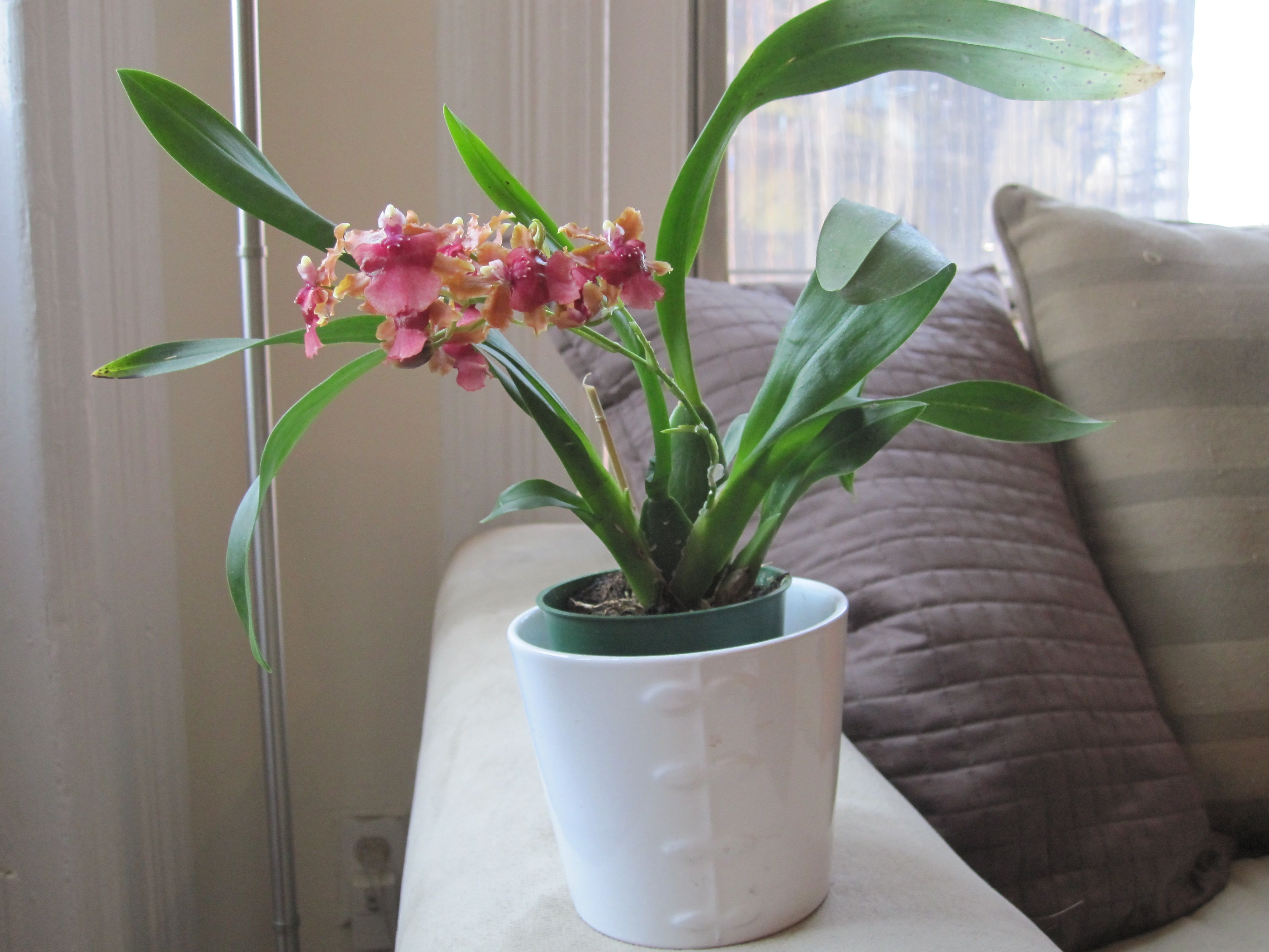 I’m not sure where I got the idea that the yellow and white orchid at the top of the post was the same type as the one that I bought. They must have been sitting next to each other on the bench or something. So this is why you don’t make assumptions. I don’t want to sound like I’m complaining. I love my newly-bloomed orchid unconditionally, like all of my orchids. 🙂 Now I’m wondering how long its blooms will last!!