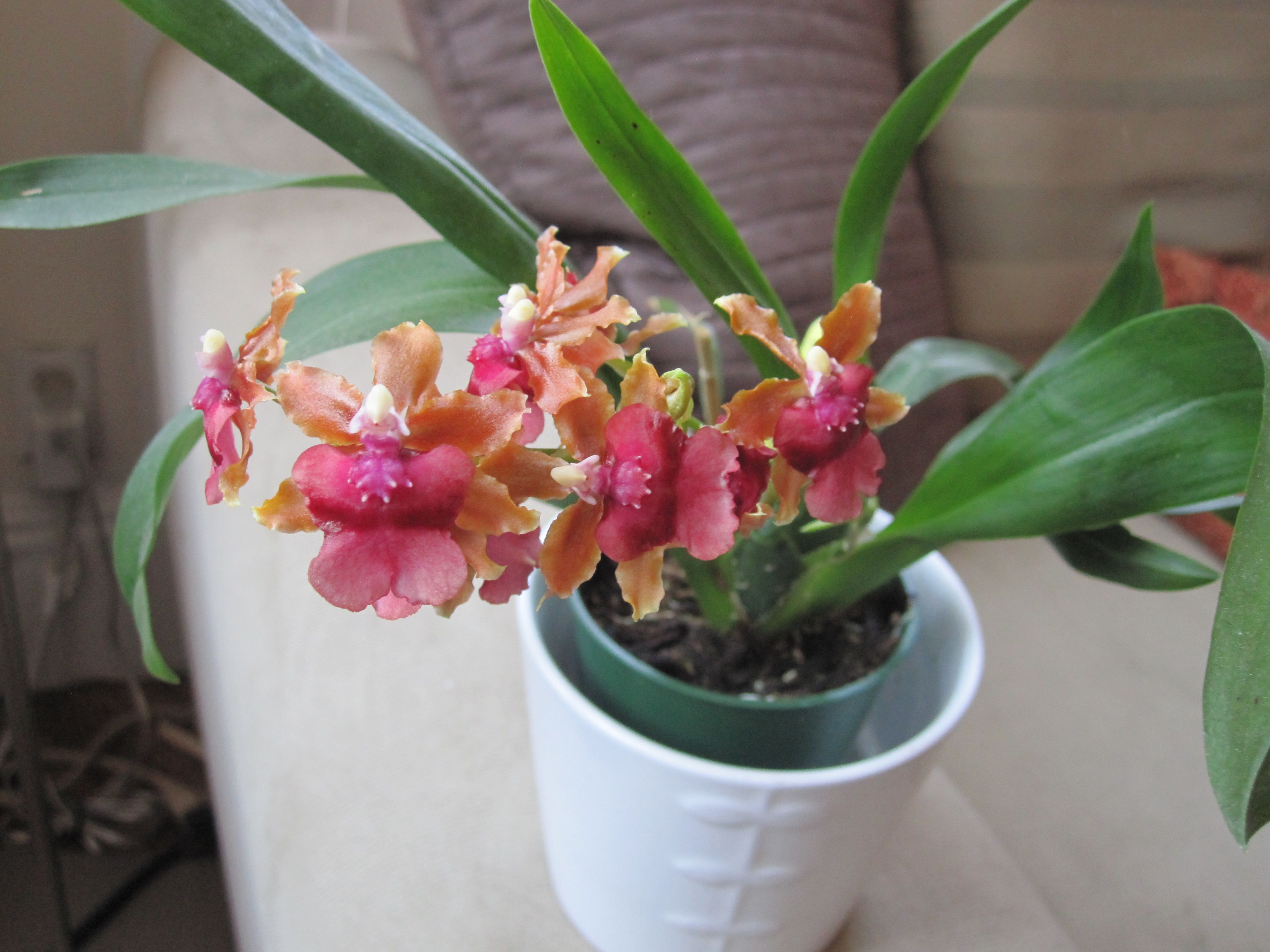 One day after my birthday, my Oncidium Pacific Sunrise ‘Hakalau’ really opened up! It’s actually not at all the orchid that I thought it was…but it’s still very lovely. This is what happens when you buy an orchid that’s not in bloom and then you don’t Google the orchid’s name. You think the flowers are gonna look like this: