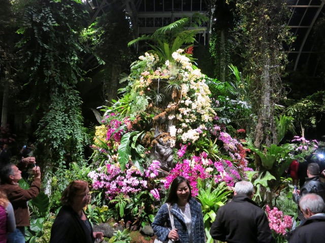 Everyone (myself included) was clamoring to get photos in front of the Orchid Show’s main centerpiece, this gorgeous mountain-and-waterfall-of-orchids: