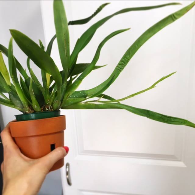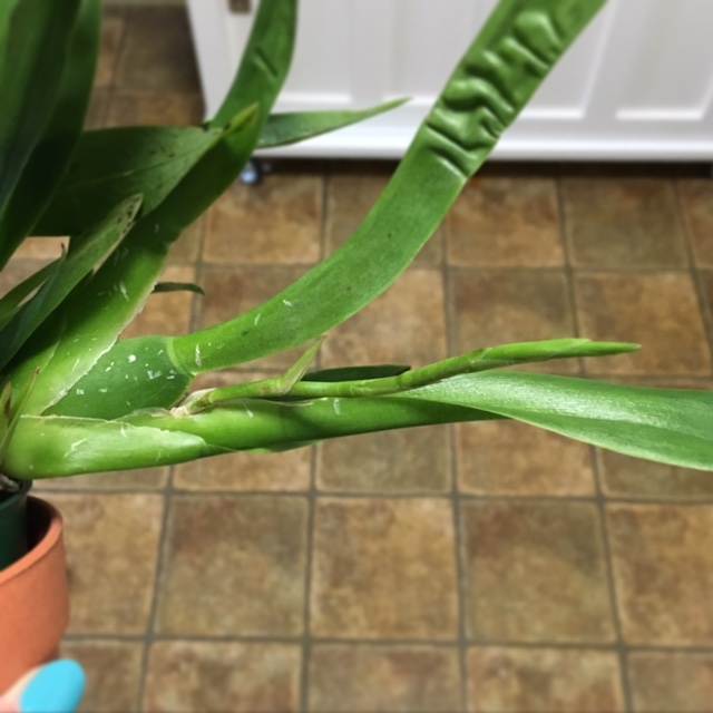 The spike was hiding inside the folds between the leaves and the pseudobulb, and it was a little bent but still totally viable. It was about an inch and a half long by the time I found it.