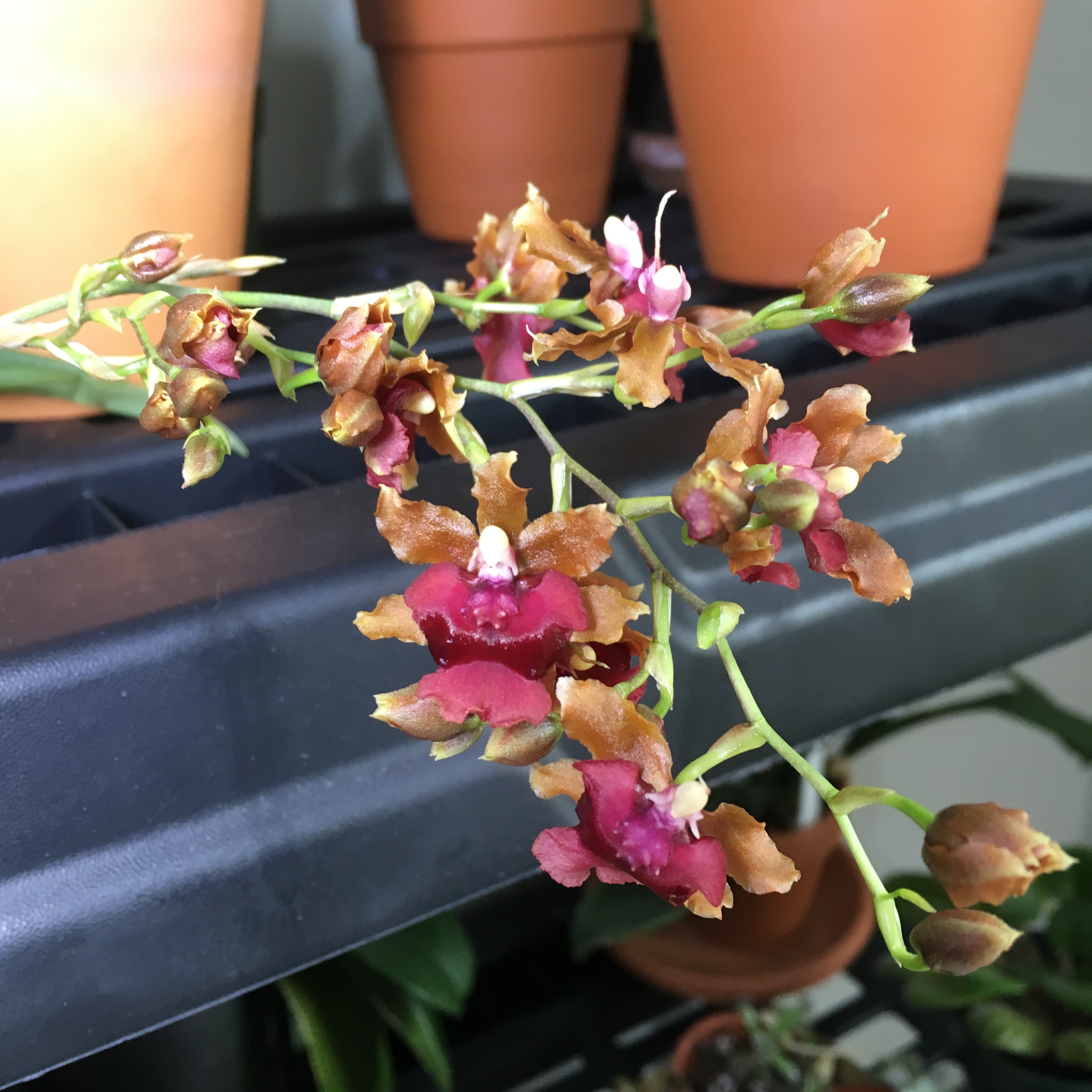 So, this is very exciting!! These are my first blooms in our “new” apartment—at least, the first on an orchid that I’ve personally coaxed into blooming here…new orchids that I’ve purchased in bloom since we moved don’t count.