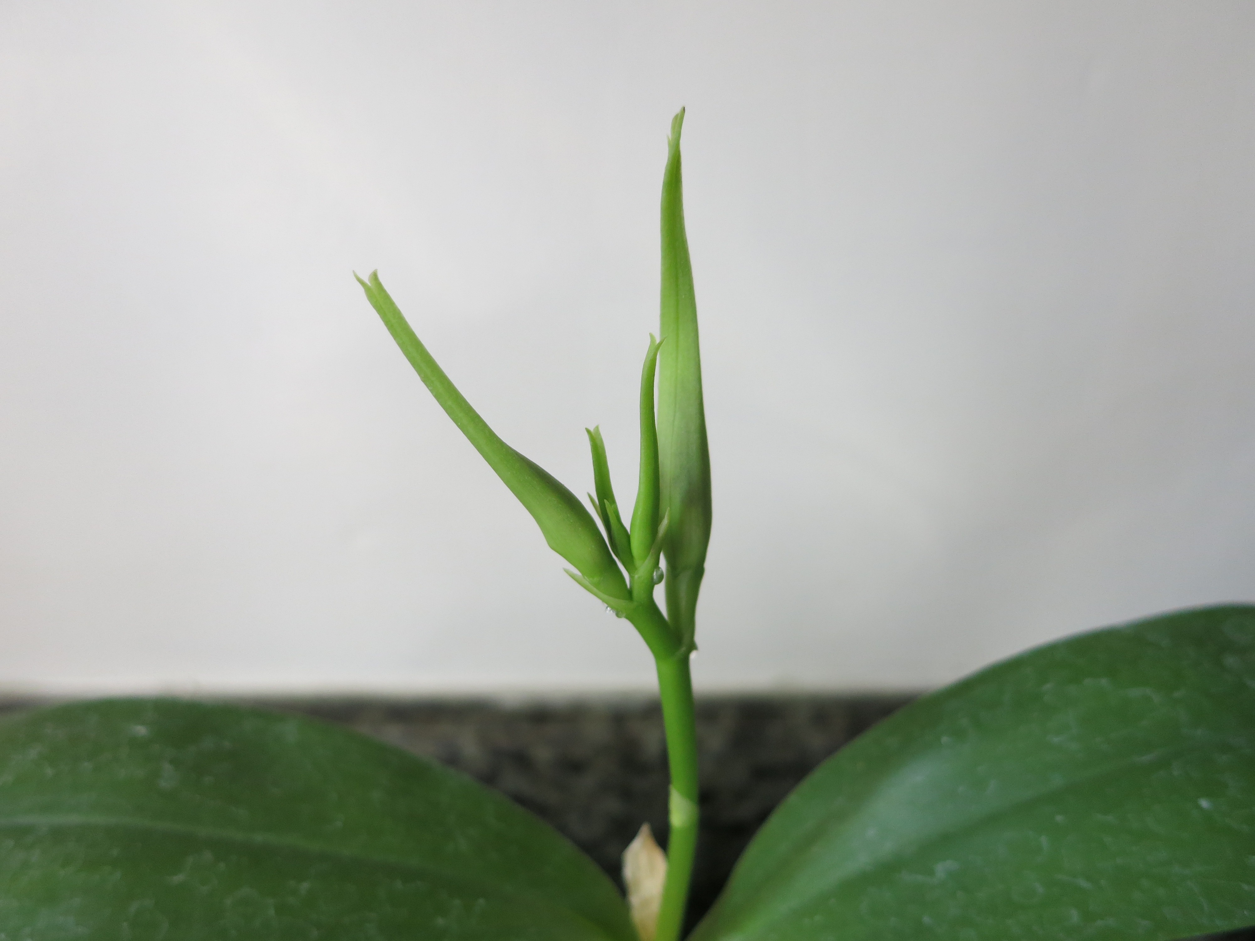 So far there are four distinct buds swelling up from the spike. It’s a little hard to see in the photo, but the buds even have happy sap on them, which indicates that the plant is really liking its environment. I am SO SUPER EXCITED for this orchid to bloom!