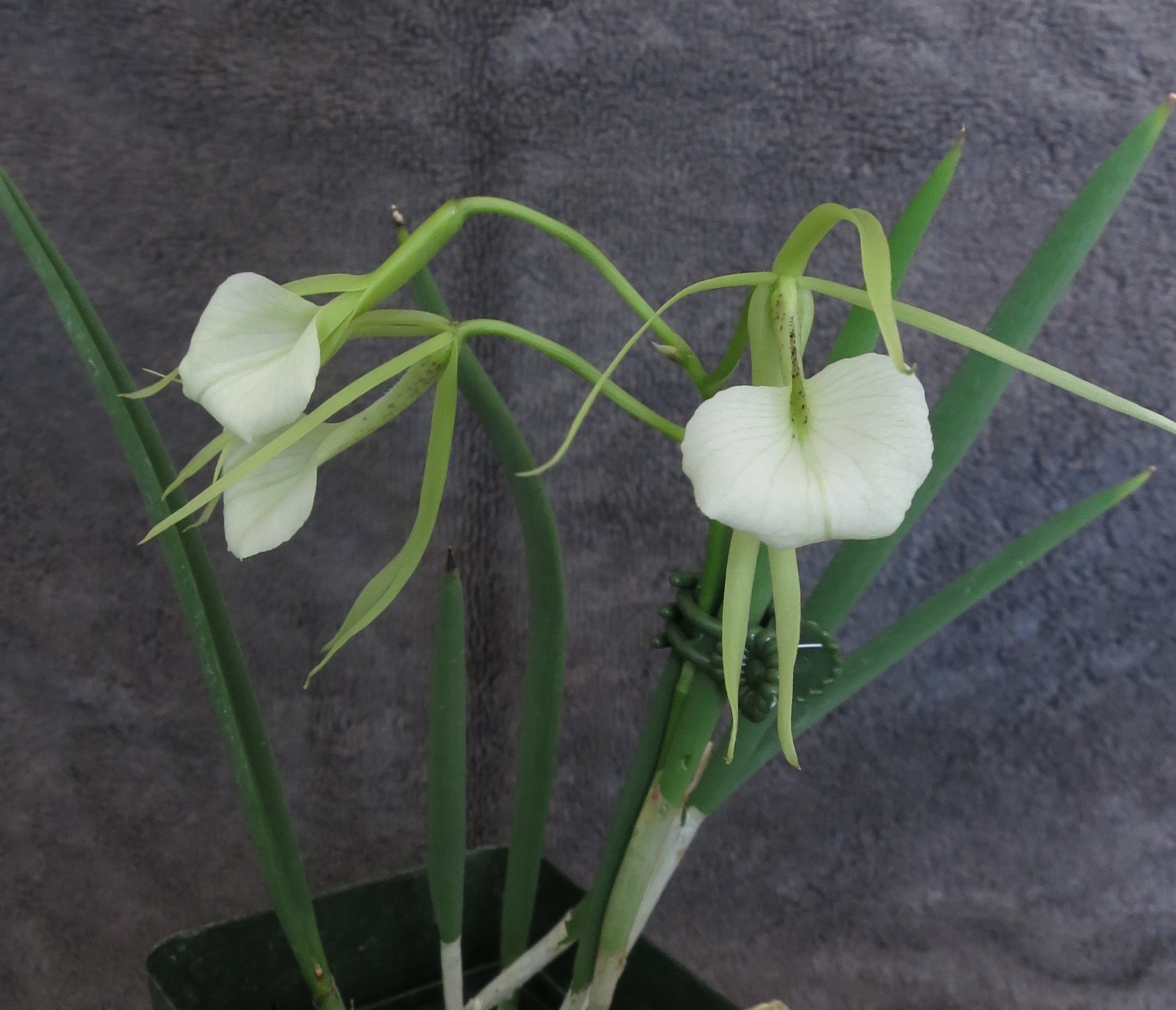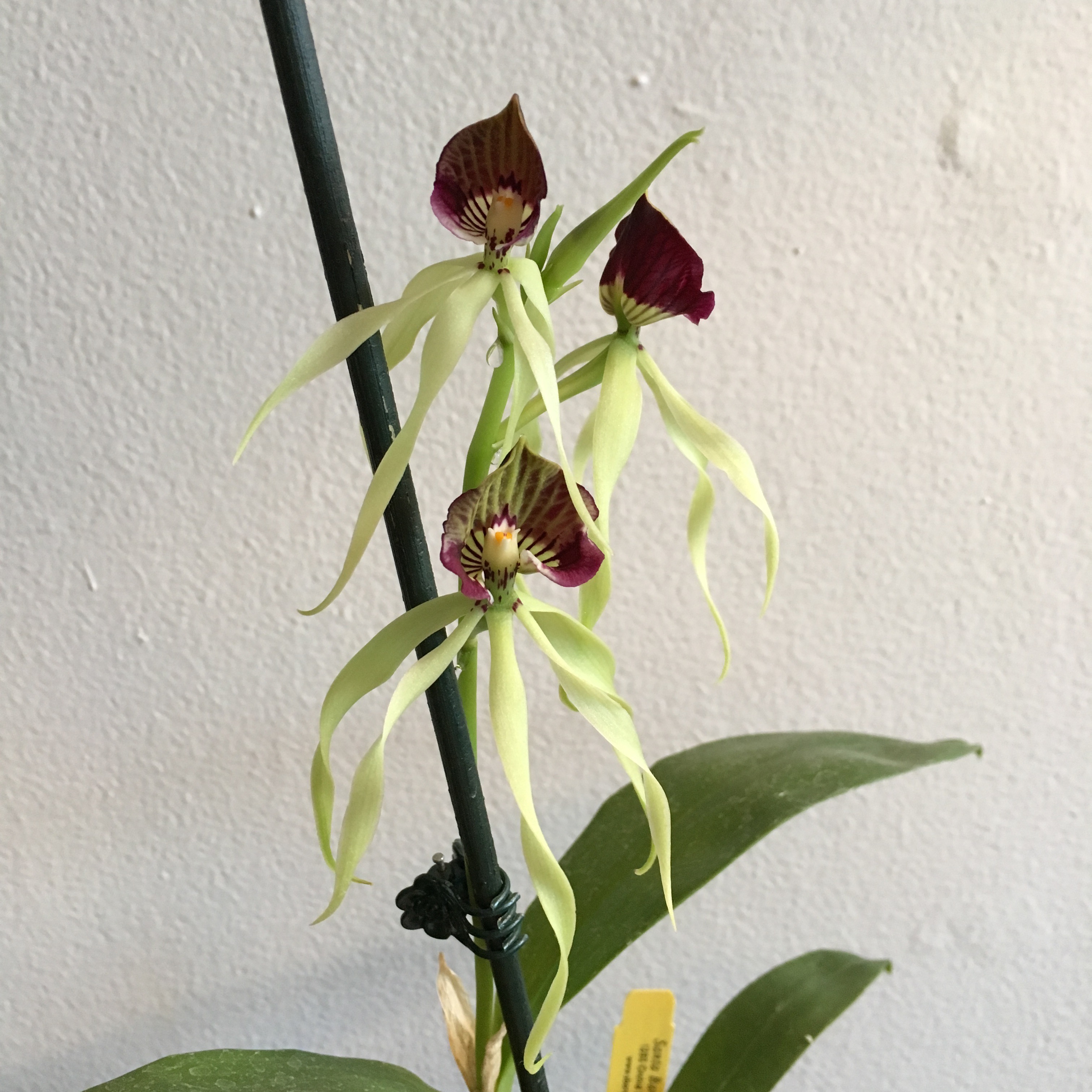 Bonus photo: my Encyclia cochleata now has three open blooms, with a fourth that should open soon and a fifth in development!