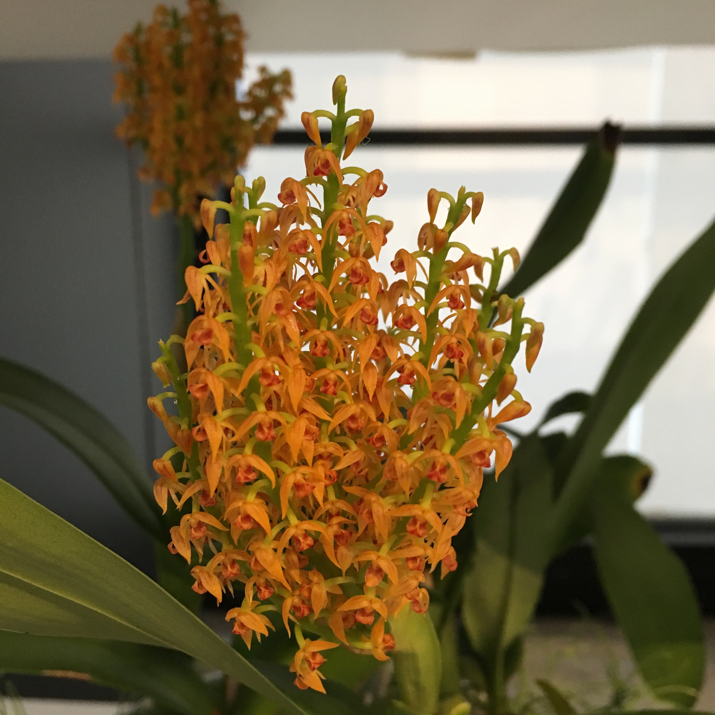 I can’t seem to find this next orchid on the identification grid (the navigation is not very user-friendly), but I think it might be some type of Cymbidium, or maybe Epidendrum?