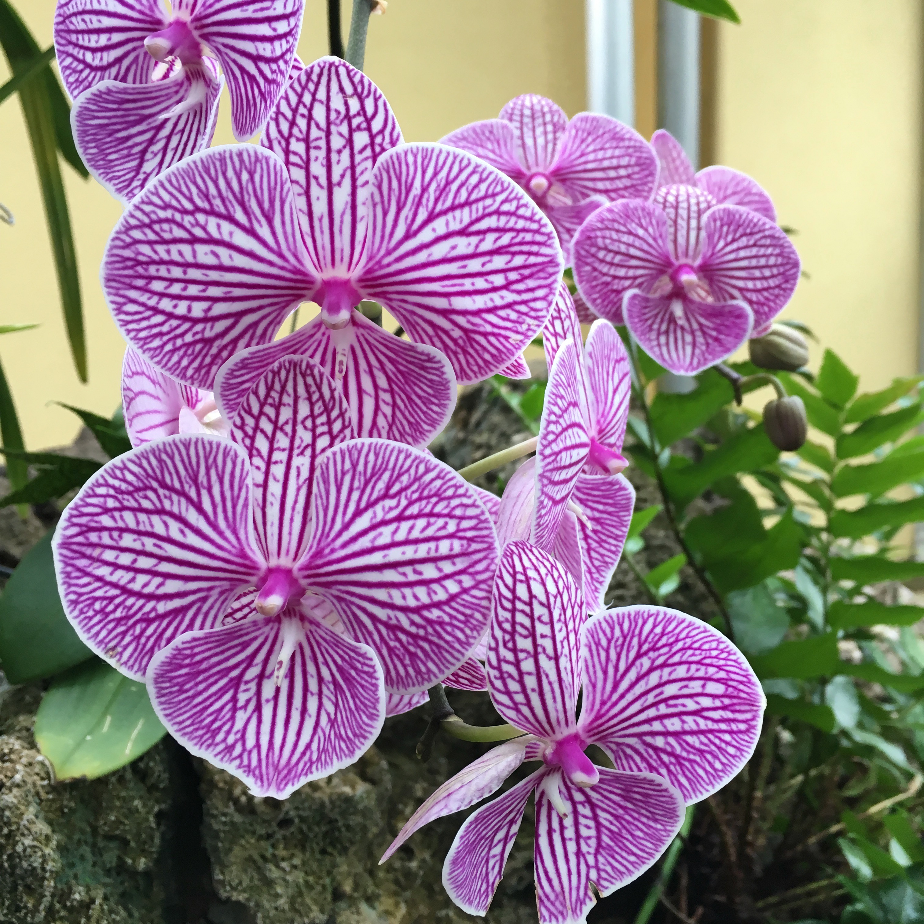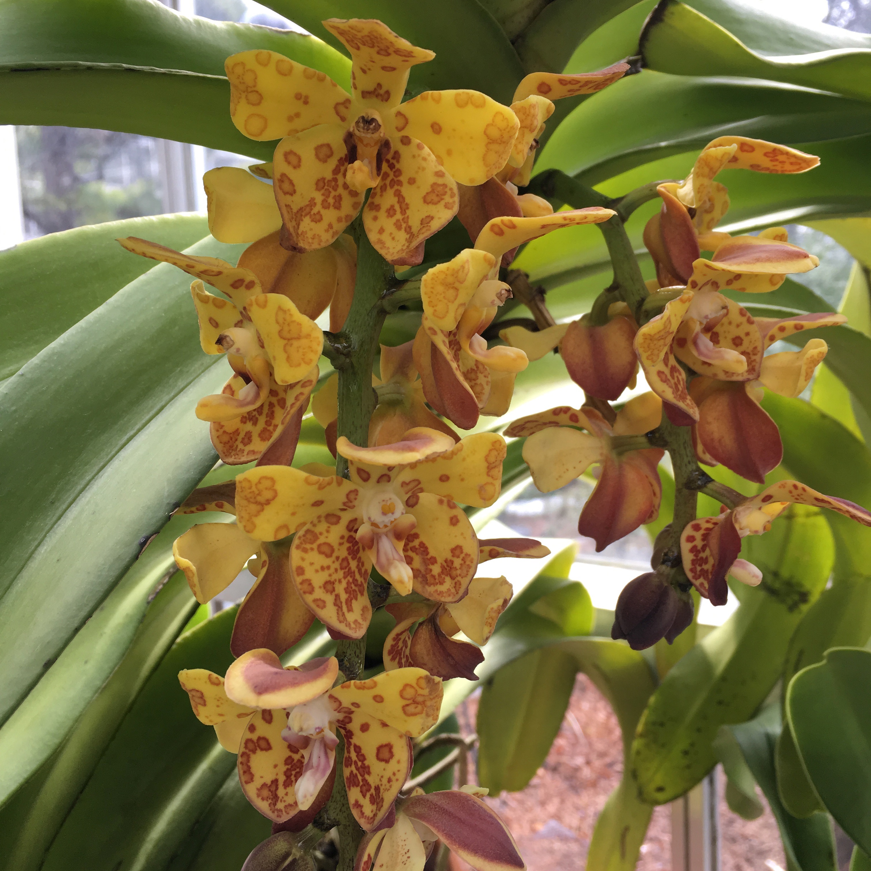 This orchid was located outside the main orchid room, but it caught my eye because it was HUGE and the blooms were so unusual—very thick and fleshy.