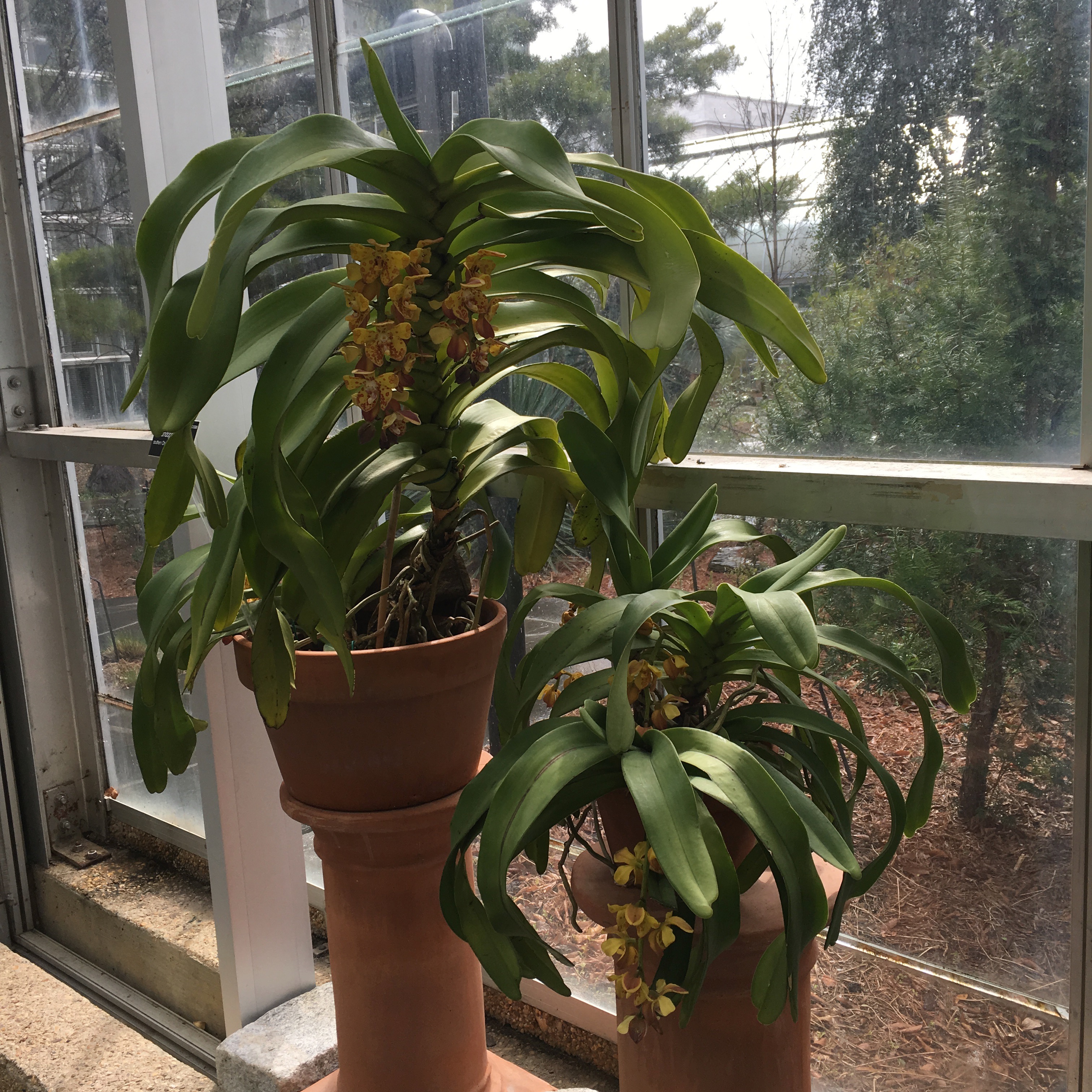 The larger of the two Vandopsis gigantea plants was probably about two feet tall. This pic will give you a better sense of its size: