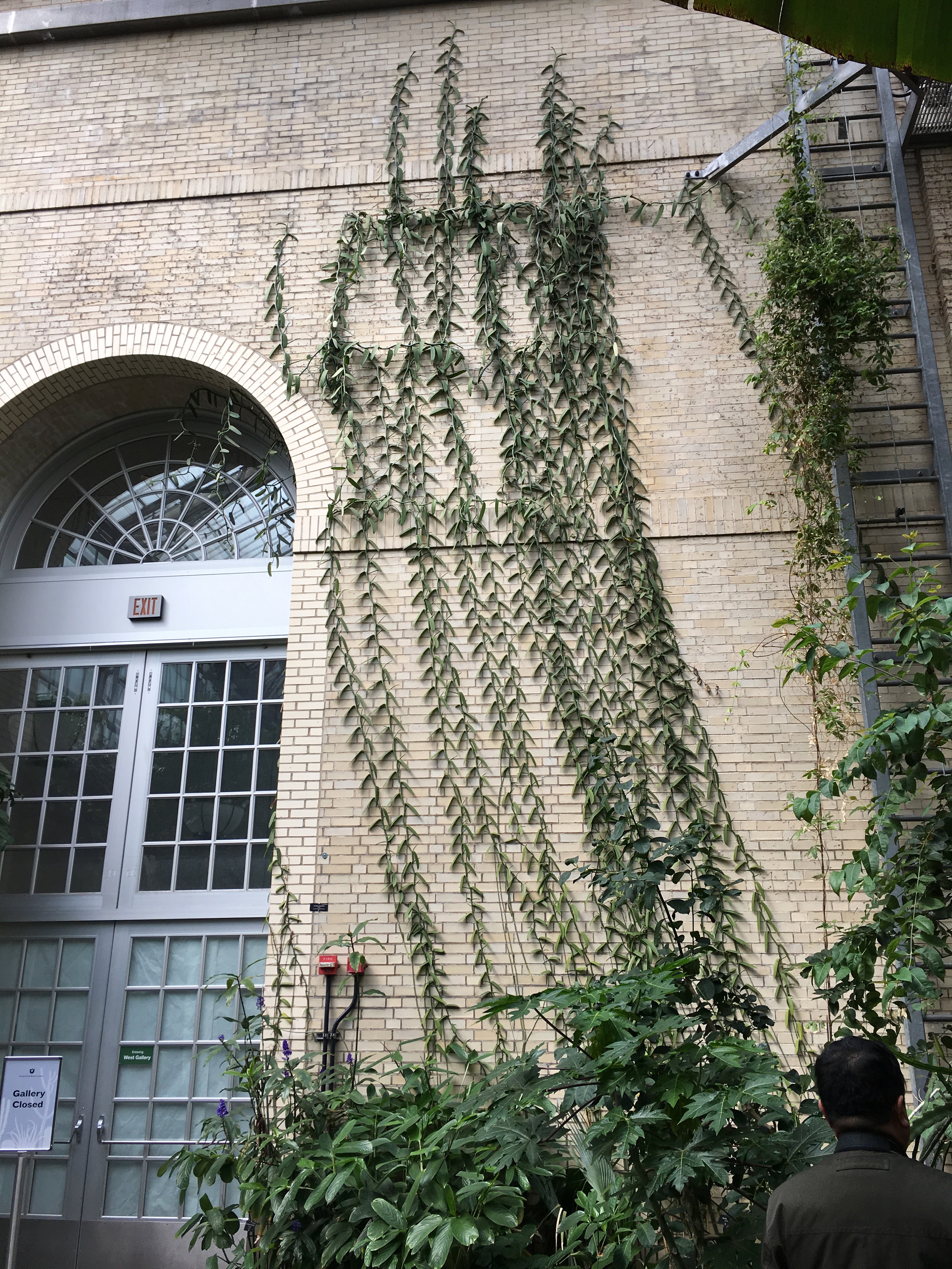 And last but not least, here’s a Vanilla planifolia plant that has clearly been creeping up this very tall wall for quite some time! I’d guess that wall is fifteen feet high minimum (I could be way off):